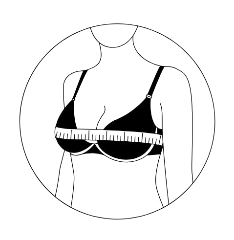 Keep tape level. Don't pull tight or compress breasts. Round to nearest whole number.